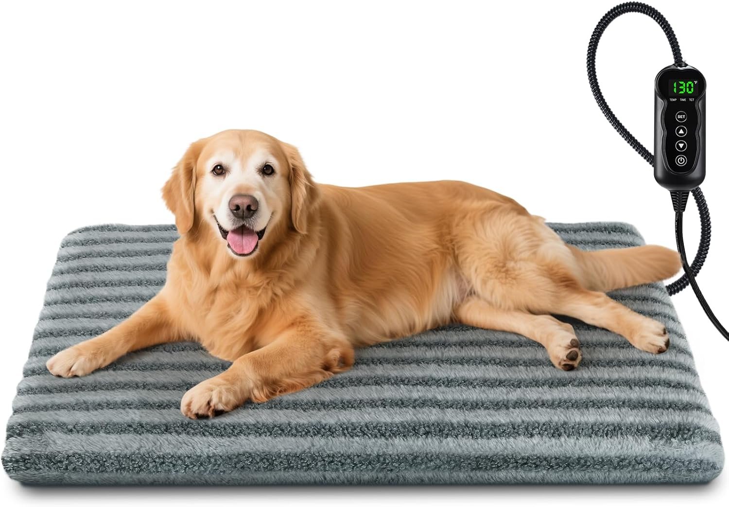 Large Pet Heating Pad, Waterproof Heated Dog Cat Bed with 11 Adjustable Temperatures & 24H Timer, Auto Shut-Off, Chew-Resistant Cord, Washable Cover,...