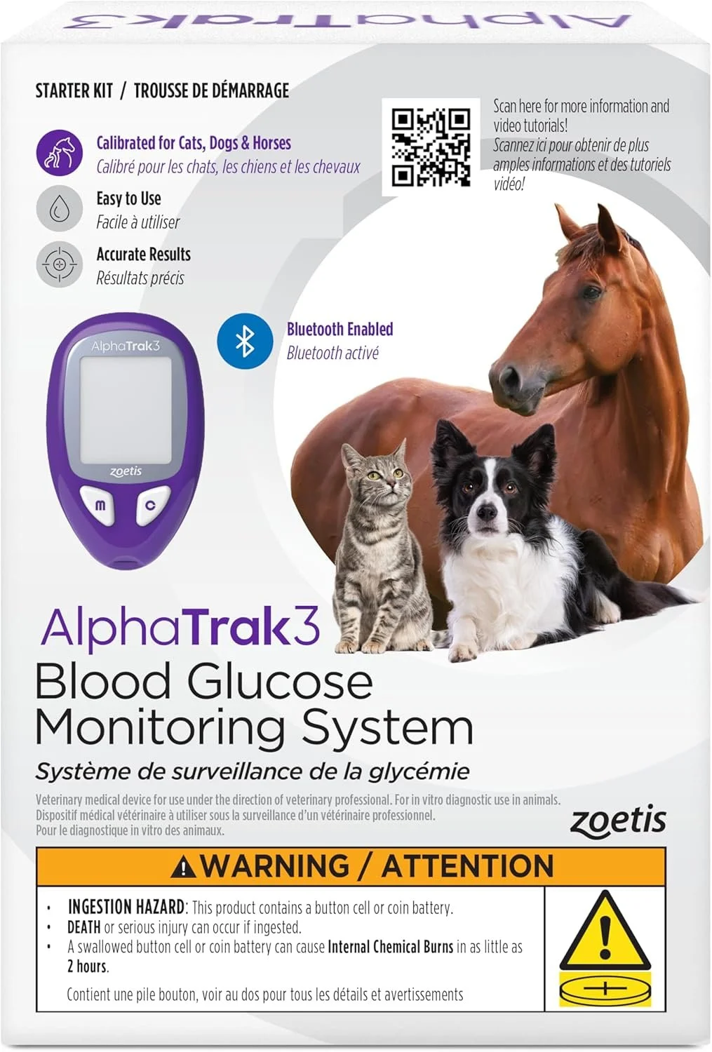 AlphaTrak 3, 8-Piece Pet Blood Glucose Monitoring Kit for Diabetic Cats, Dogs, and Horses, All-in-One Solution for in-Clinic or at Home with Digital Results